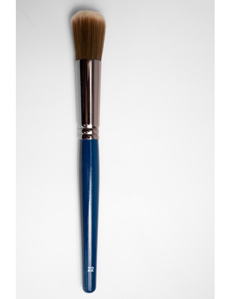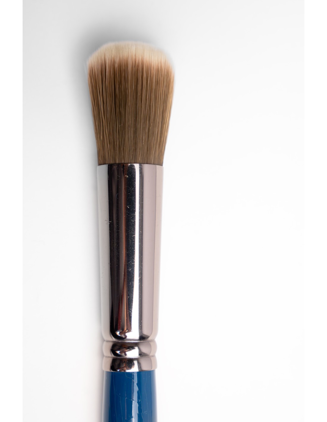 Brocha de contorno. Por su forma recta se estructura perfectamente el rostro. Su suave pelo de cabra funde el polvo con la base sin levantarla y dejando un acabado marcado del pómulo.