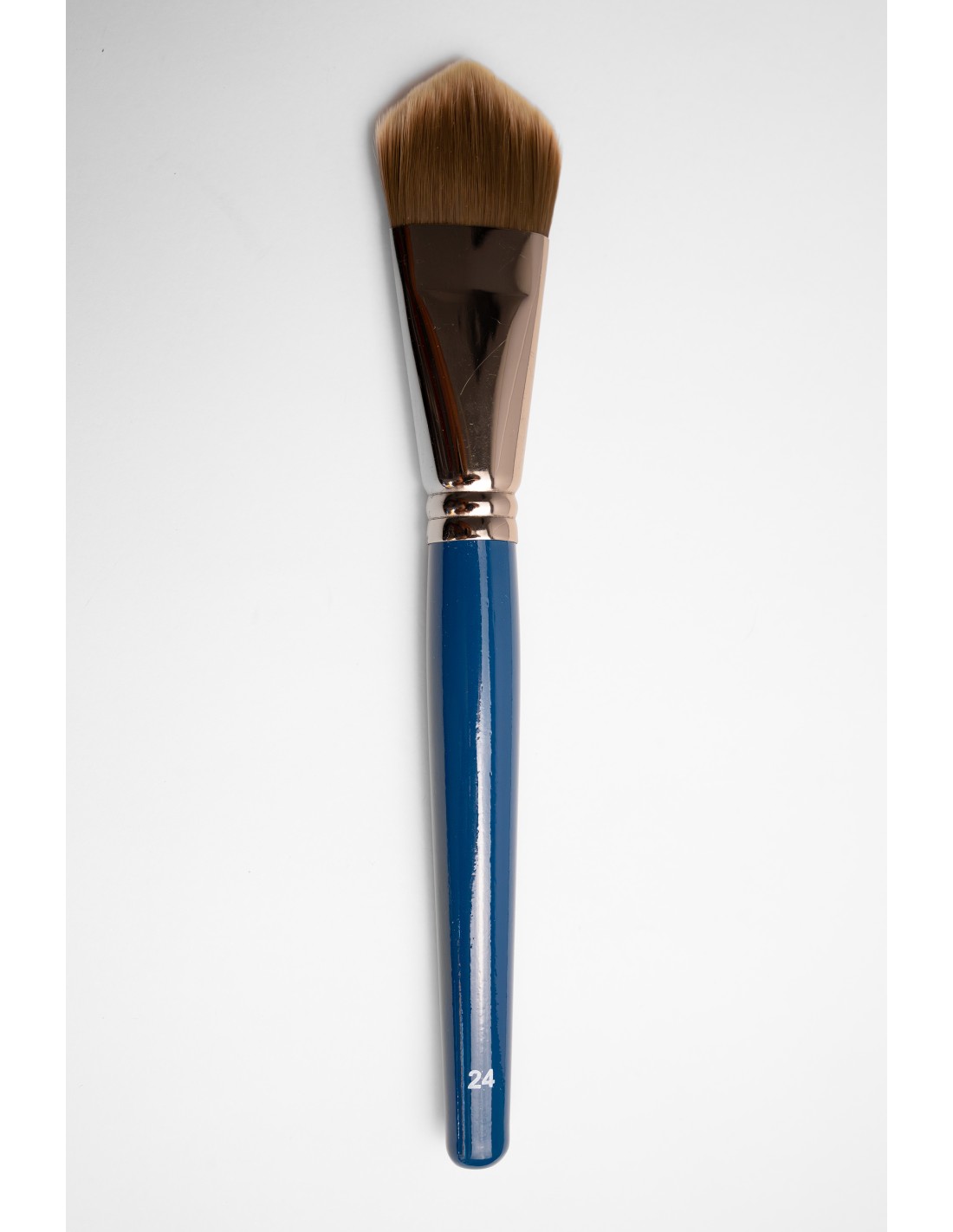 Brocha de contorno. Por su forma recta se estructura perfectamente el rostro. Su suave pelo de cabra funde el polvo con la base sin levantarla y dejando un acabado marcado del pómulo.
