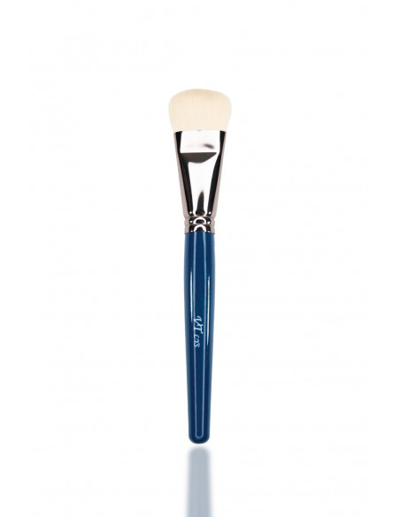 Brocha de contorno. Por su forma recta se estructura perfectamente el rostro. Su suave pelo de cabra funde el polvo con la base sin levantarla y dejando un acabado marcado del pómulo.