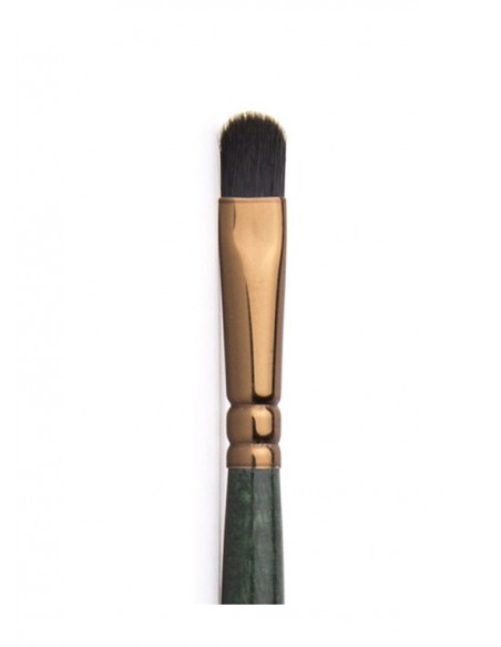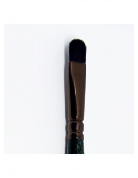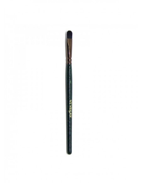 Pincel de sombras que al tener la salida del pelo corto da mejores resultados en el depósito y difuminación de sombras. Ideal para escuelas y para gente que está empezando. Es más barato y de menor calidad que el pelo de marta.