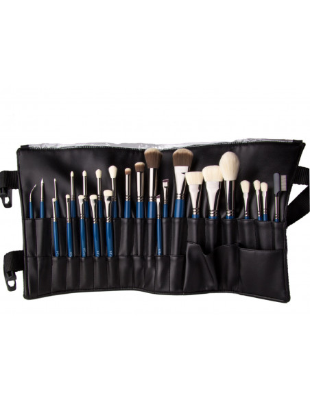 Manta de couro sintético azul feito à mão na Espanha. Inclui um cinto para a sua aderência e fecho duplo para segurança. Tem 30 bolsos pequenos para escovas e 2 pequenos. Também com uma viseira de plástico protetora para pinceis.Inclui um conjunto de 25 pincéis de pêlo de cabra branco misturado principalmente com cabelo sintético. As escovas incluídas são:-VT LYS EYE LINER ANGULADO -VT LYS LABIOS -VT LYS SOMBRA 3 -VT LYS SOMBRA 4 -VT LYS SOMBRA 5 -VT LYS SOMBRA 6 -VT LYS SOMBRA 7 -VT LYS PLANO LARGO Nº 1 -VT LYS PLANO LARGO Nº 2 -VT LYS SESGADO CURTO Nº 1 -VT LYS SESGADO CURTO Nº 2 -VT LYS REDONDO MINI -VT LYS REDONDO OLHOS CURTO -VT LYS PÔS REDONDO -VT LYS REDONDO LARGO -VT LYS REDONDO OLHOS MEIO -VT LYS REDONDO OLHOS CURTO PEQUENO -VT LYS SESGADO OLHOS -VT LYS REDONDO GRANDE -VT LYS CONTORNO REDONDA -VT LYS REDONDO BASE PEQUENO -VT LYS APLICAÇÃO BASE PONTA -VT LYS RECTA PLANA ROSTO -VT LYS RUGE CURTO REDONDO -VT LYS ESCOVA PENTE METALICO