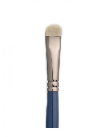 PINCEL DE SOMBRA DE CABELO CABRA BRANCO, CABO AZUL E VIROLA COR ANTRACITO.LOGO TAMPOGRAFIADA E REFERÊNCIA AO FINAL DO CABO