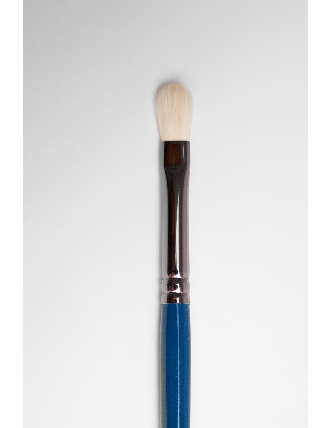 PINCEL DE SOMBRA DE CABELO CABRA BRANCO, CABO AZUL E VIROLA COR ANTRACITO.LOGO TAMPOGRAFIADA E REFERÊNCIA AO FINAL DO CABO