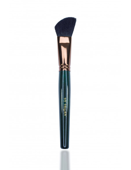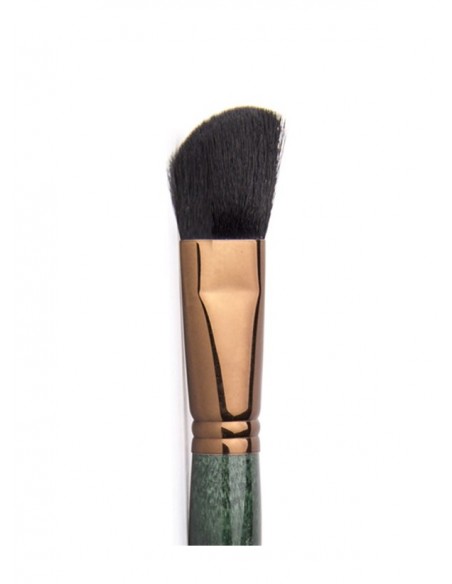 Pincel de colorete de pelo sintético negro de alta calidad, mango verde y virola marrón.